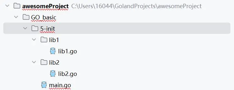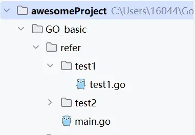 建立与下图一样的目录结构,每个程序都必须要有一个main包,我们会在main包中调用test1(lib1)和test(lib2)的api。我们需要创建两个与需要调用包相同命名的文件夹,这个文件夹需要和main包同级,并把在对应的文件夹中创建Go包。【注意,如果是在同一个文件夹中创建多个包,那么该文件夹下的所有包名均和该文件夹名相同】
