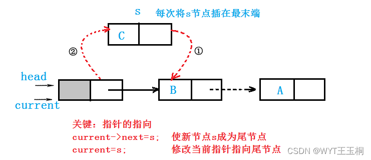③在第一个代码块中Node代表结点的类型,而LinkList代表指向Node结点类型的指针