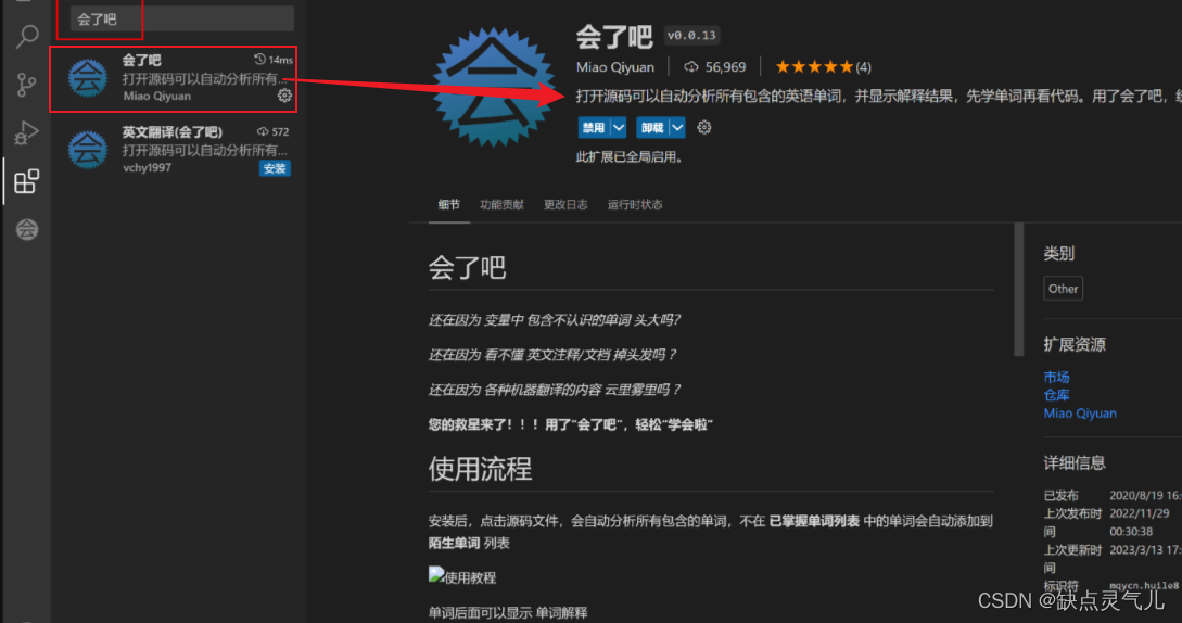 在搜索栏里搜索【会了吧】,这个是在你敲代码时会自动识别你敲的单词进行翻译,如果你有一个单词不认识,可以点进“会了吧”看看翻译。