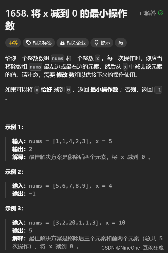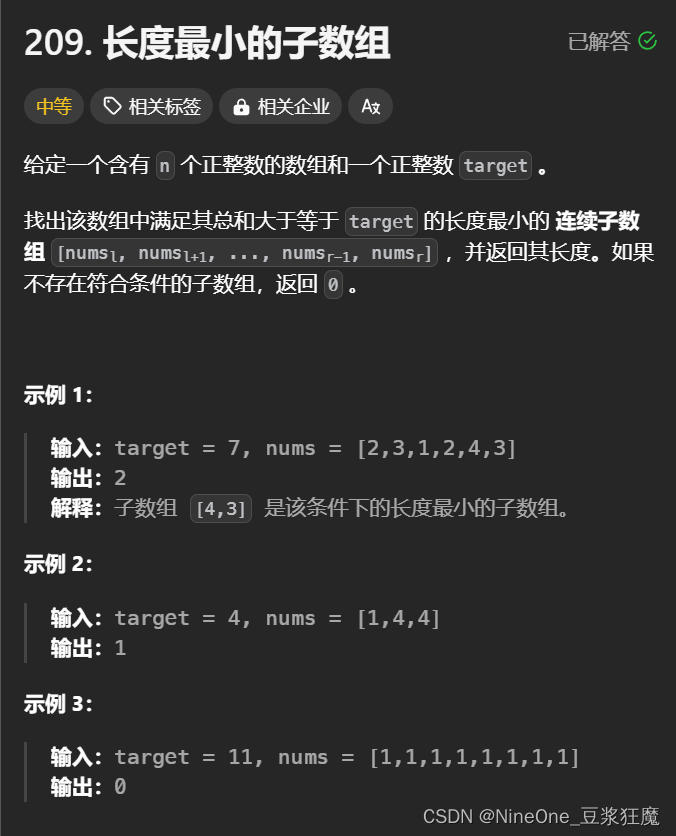 ③数组内的值都大于0, 符合单调性(sum += nums[right] -> sum增大)