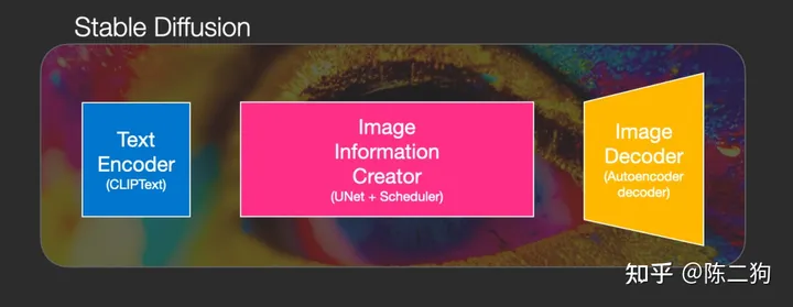 可以看到,Stable Diffusion总共包含三个主要的组件,其中每个组件都拥有一个独立的神经网络: