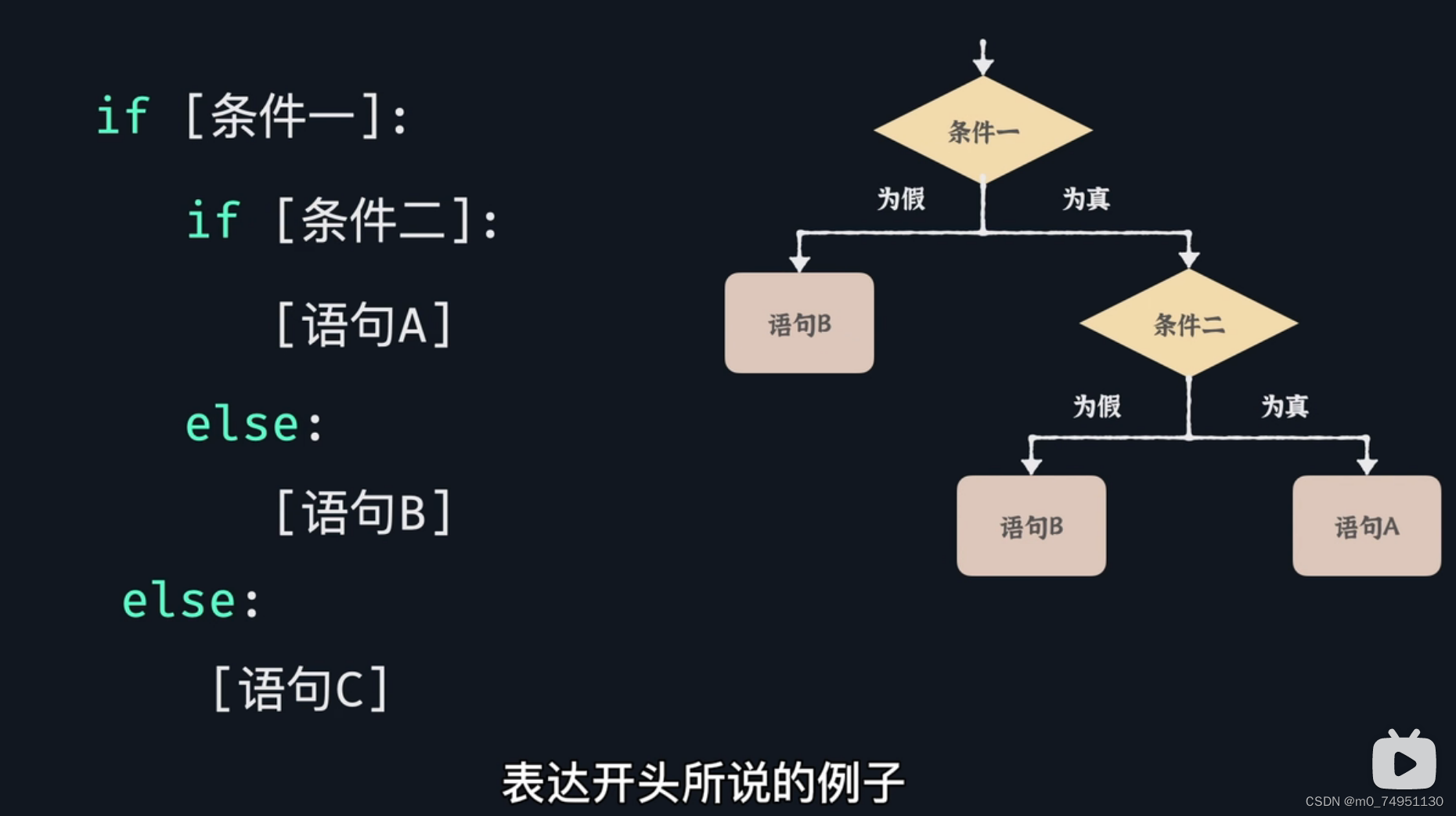 Python与C或Java不同,其if条件语句不使用括号,而是通过缩进来定义代码块。当心情指数大于60时,程序会打印你现在很开心,否则打印你现在很伤心。Python中的else-if语句写作elif。