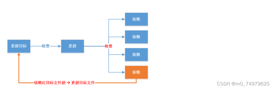 本质是因为make执行的时候它会判断形成的依赖的时间戳是否比目标文件的时间晚,是的话就不去执行。因为你先决条件的那个文件内容都没被修改,再执行形成的目标文件还是相同的。