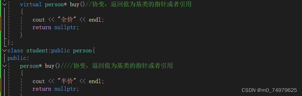 我们重写虚函数的时候,要保证返回值和参数,函数名相同,不过有个特列。允许返回值为父类或者子类的指针或者引用。它照样可以实现多态