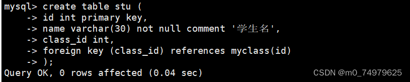 插入数据,主表和从表是互相约束的。这里的插入class_id必须是myclass中存在的或者class_id