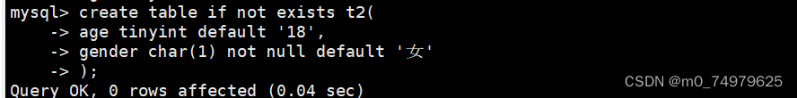 需要要注意的是:如果我们没有not null ,mysql会设置default 为空。反之设置了not null 就不是在了。