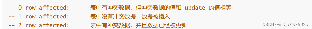 1.如果我们插入的数据和主键或者唯一键,冲突了,就可以使用这个进行冲突数据的更新,有三种情况。