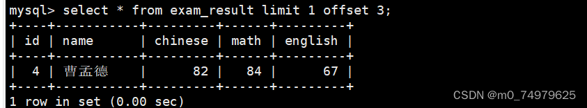 2.limit n offset m。这代表,从m行开始显示n行。第三行开始显示一行,就是第四行
