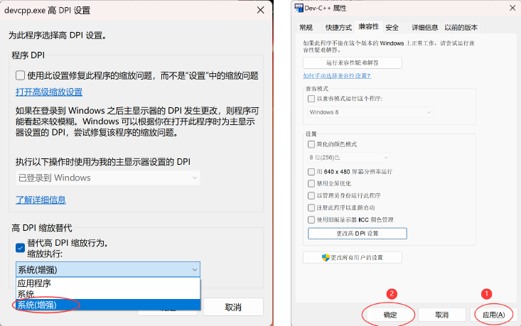 因为Dev-C++很久不再更新,而且版本比较老,所现在显示器的高分辨率支持不好,所以看起来显示不够清晰。