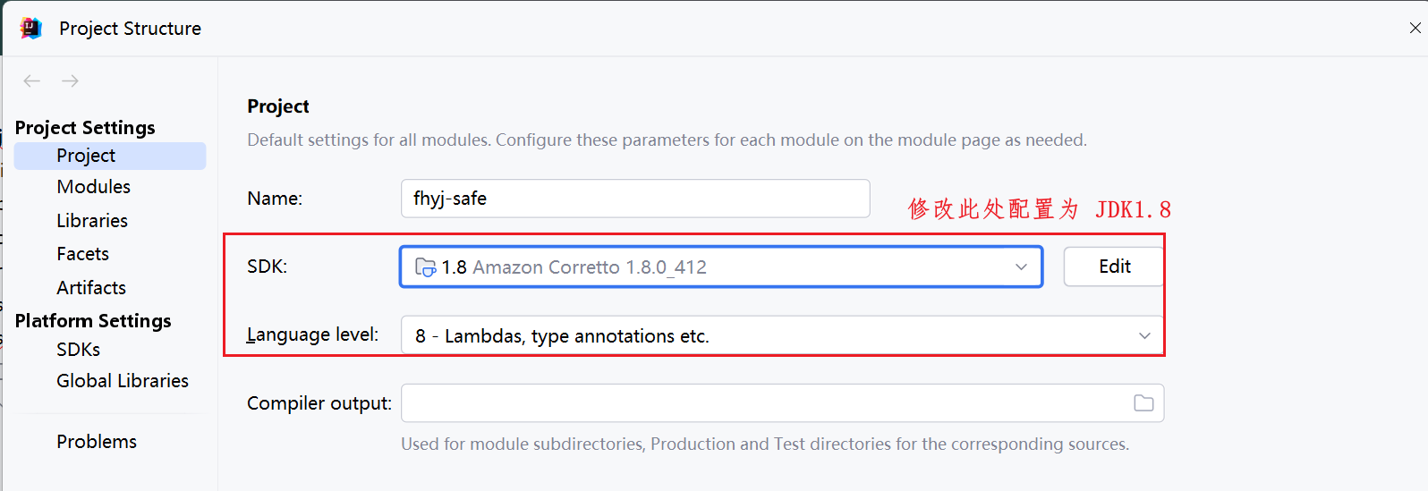目录 1. 问题描述 2. 解决方案 1. 问题描述 在 IDEA 中经过 MAVEN 下载仍存在该问题: 2. 解决方案 第一步:打开 Project Structure 第二步:修改项目的 JDK 版本