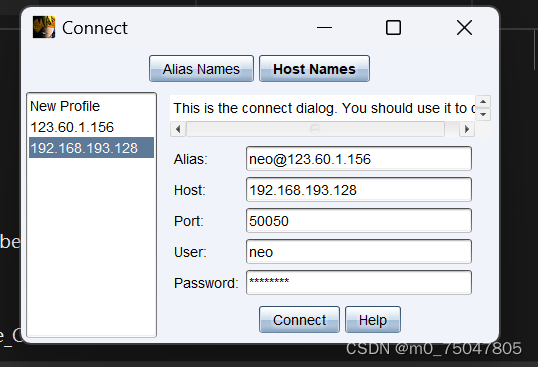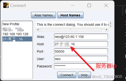 接着启动客户端程序,在host处填写服务器ip,pass处填写刚刚在服务器端设置的密码即可