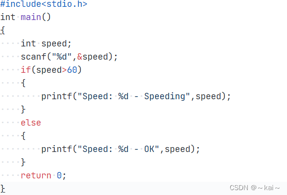 模拟交通警察的雷达测速仪。输入汽车速度,如果速度超出60 mph,则显示“Speeding”,否则显示“OK”。