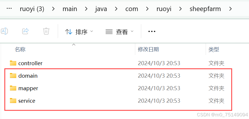 直接将domain、mapper、service的上级目录复制到com.ruoyi中,再删掉多余的controller文件夹