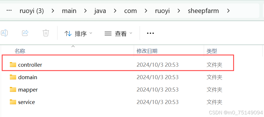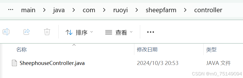 在controller下建立文件夹,与修改的生成包路径同名,将SheephouseController.java复制进建立的文件夹中