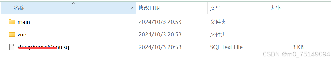 这里的main和vue文件夹里面的是需要部署的代码,sql文件不用管