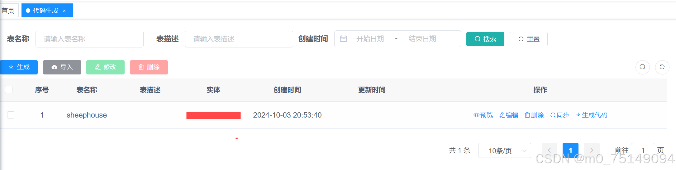 在若依系统-->系统工具-->代码生成中导入建好的表