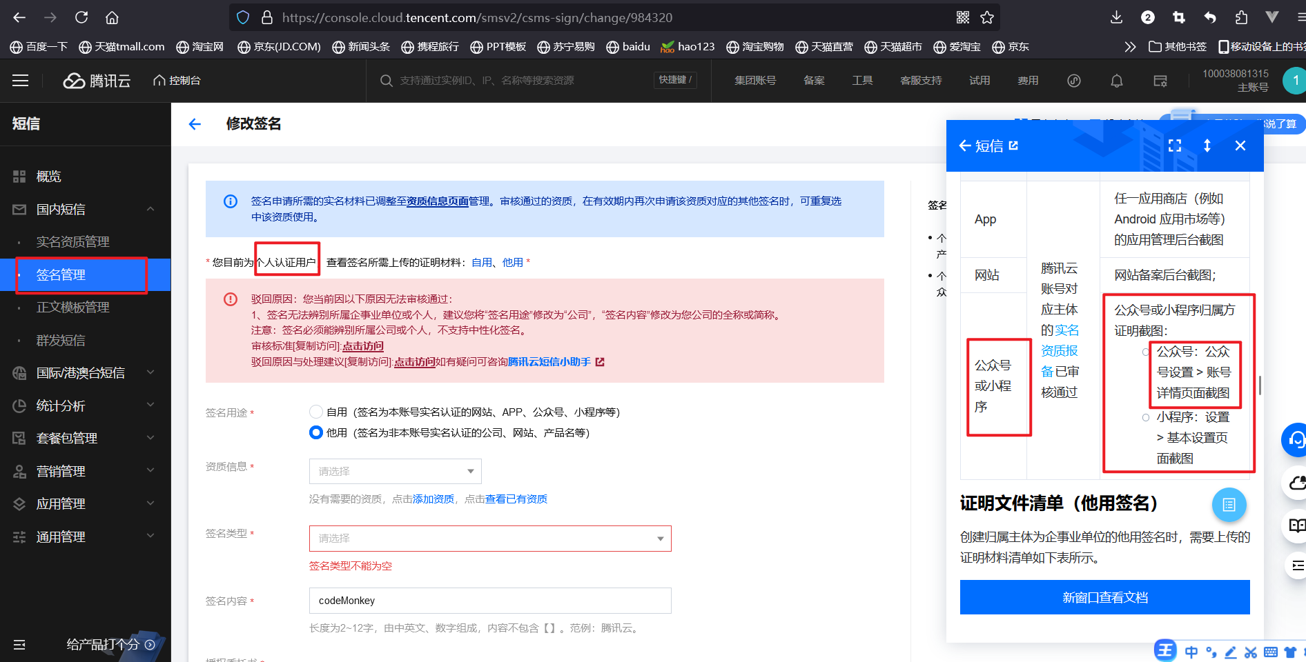 首先我们想要使用给腾讯云的短信服务需要上传很多资料的,阿里云的短信服务也是如此!