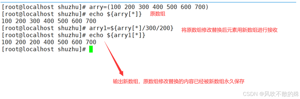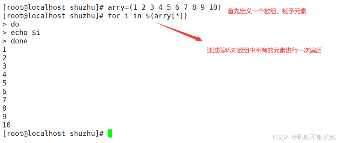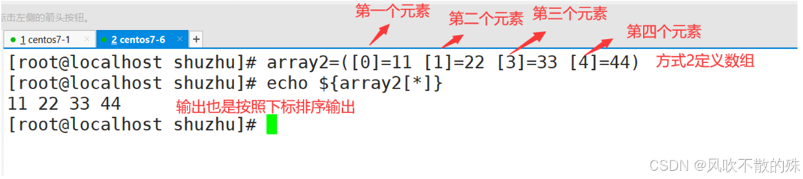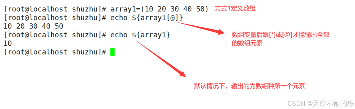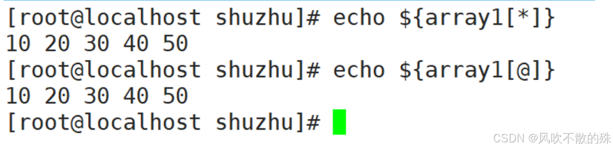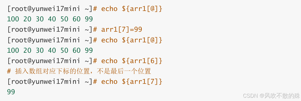 2.输出依据数组长度的最后一个元素:echo ${数组名[lenth-1]]