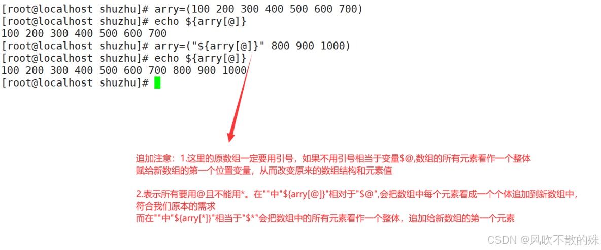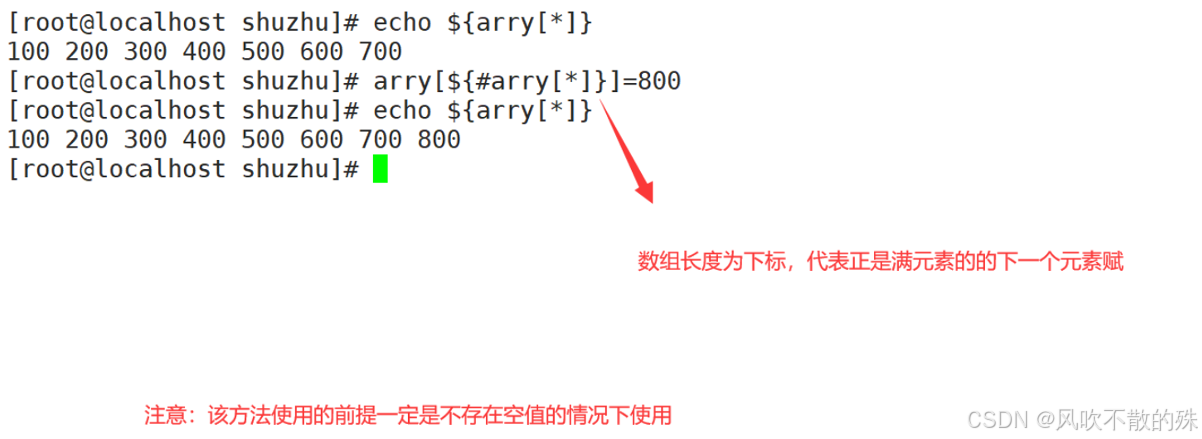 格式: 数组名[${#数组名[*]}] =新元素 或 数组名[${#数组名[@]}] =新元素