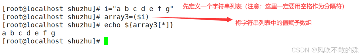 2.用数组获取字符串列表中的内容: 数组名=($列表名)
