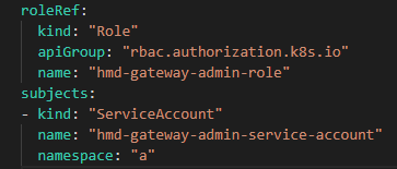 对于 ServiceAccount、Role与RoleBinding,在修改ServiceAccount与Role的资源名后需要在 RoleBinding 中对应地更新资源名称。