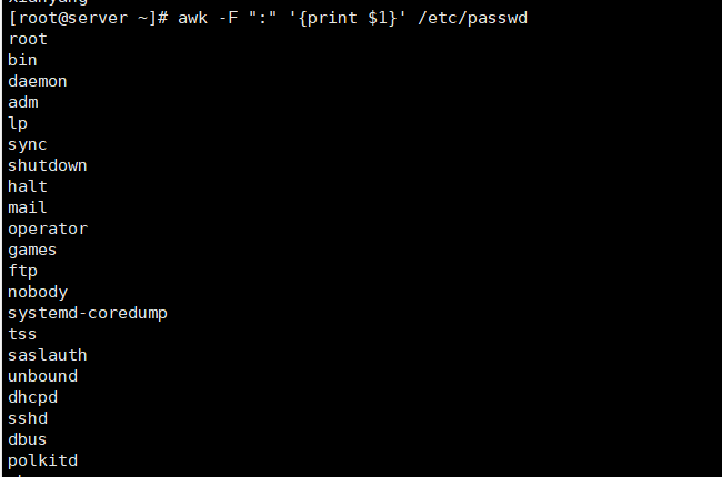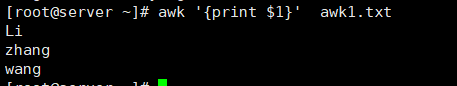 [root@server ~]# awk '{print $1}' awk1.txt # 第一个域,即第一列