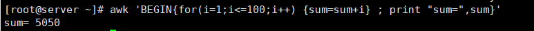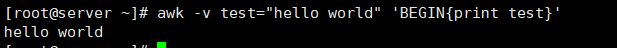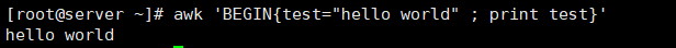 [root@server ~]# awk 'BEGIN {print "this is test"}'