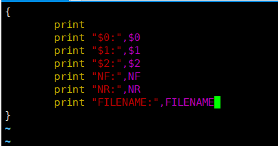 第二步:自动更新awk的内置系统变量的值,例如列数变量NF、行数变量NR、行变量 以及各个列变量1、$2等等