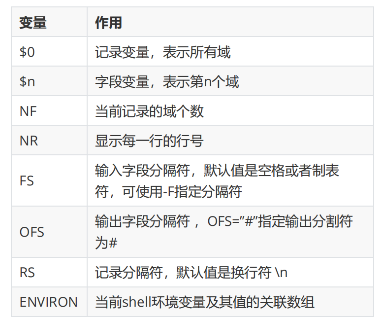 awk认为输入文件是结构化的,awk将每个输入文件行定义为记录,行中的每个字符串定义为域,域之间用空格,Tab键或其他符号进行分隔,分隔域的符号就叫做分隔符,默认为空格或tab