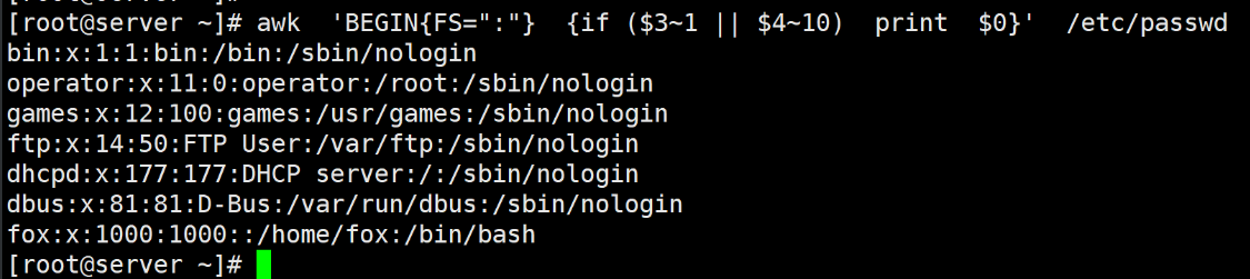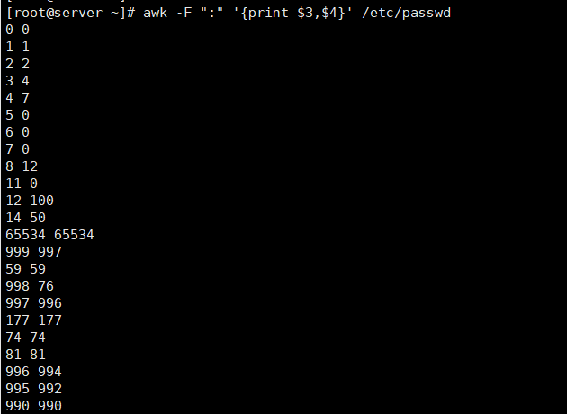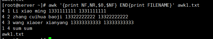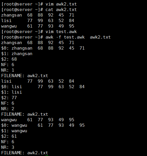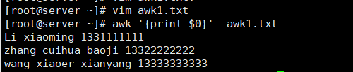[root@server ~]# awk '{print $0}' awk1.txt # 所有域