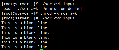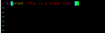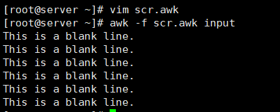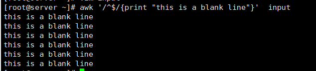 [root@server ~]# awk '/^$/{print "This is a blank line"}' input