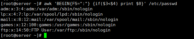 [root@server ~]# vim input # 新建awk脚本,输入以下内容