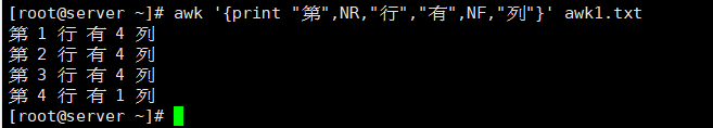 [root@server ~]# awk '{print $4}' awk1.txt # 第4例