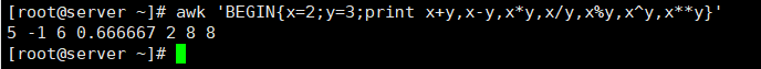 [root@server ~]# awk 'BEGIN{a=1;print ++a}'