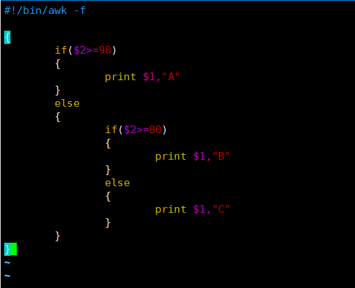 #!/bin/awk -f # 注意需要增加,表示使用什么解释器来执行