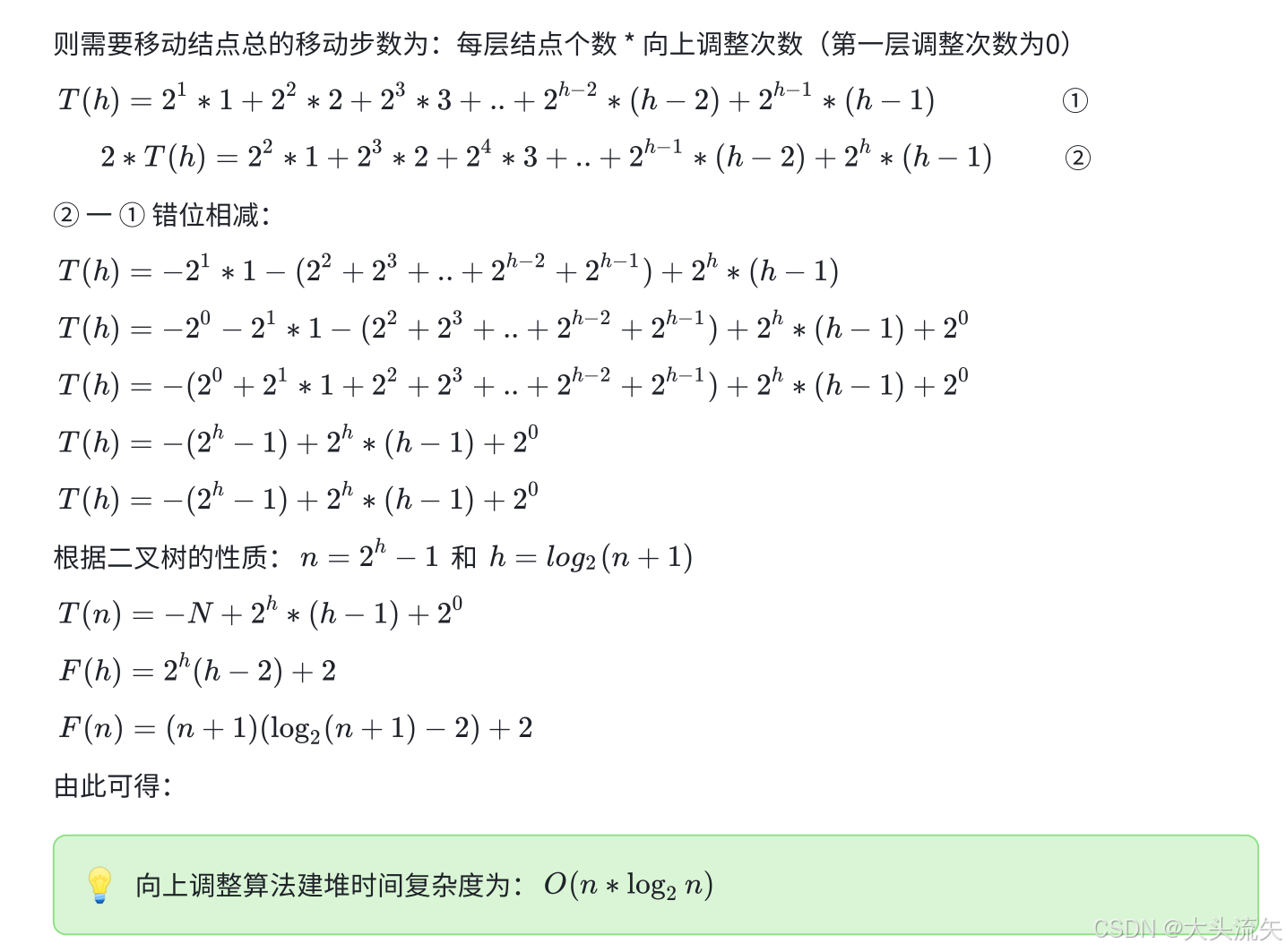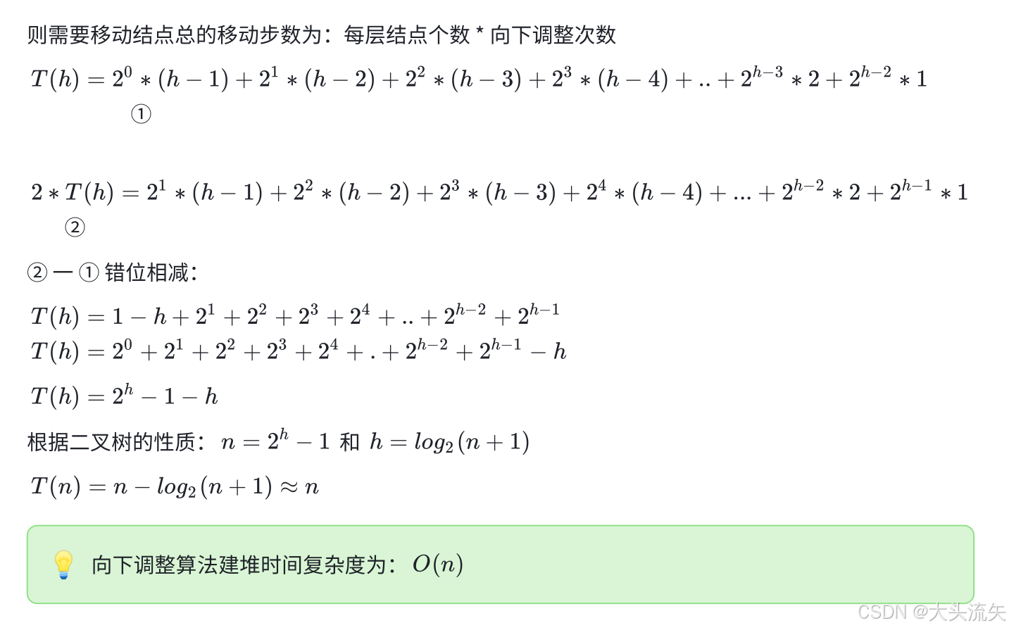 - 适用场景:已存完数据的静态数组建堆(如堆排序初始堆、批量数据建堆)。