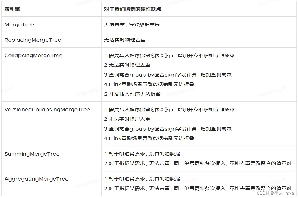 - 合并时机不确定,在查询时会有重复数据,最终去重,手动调optimize,引发大量读写