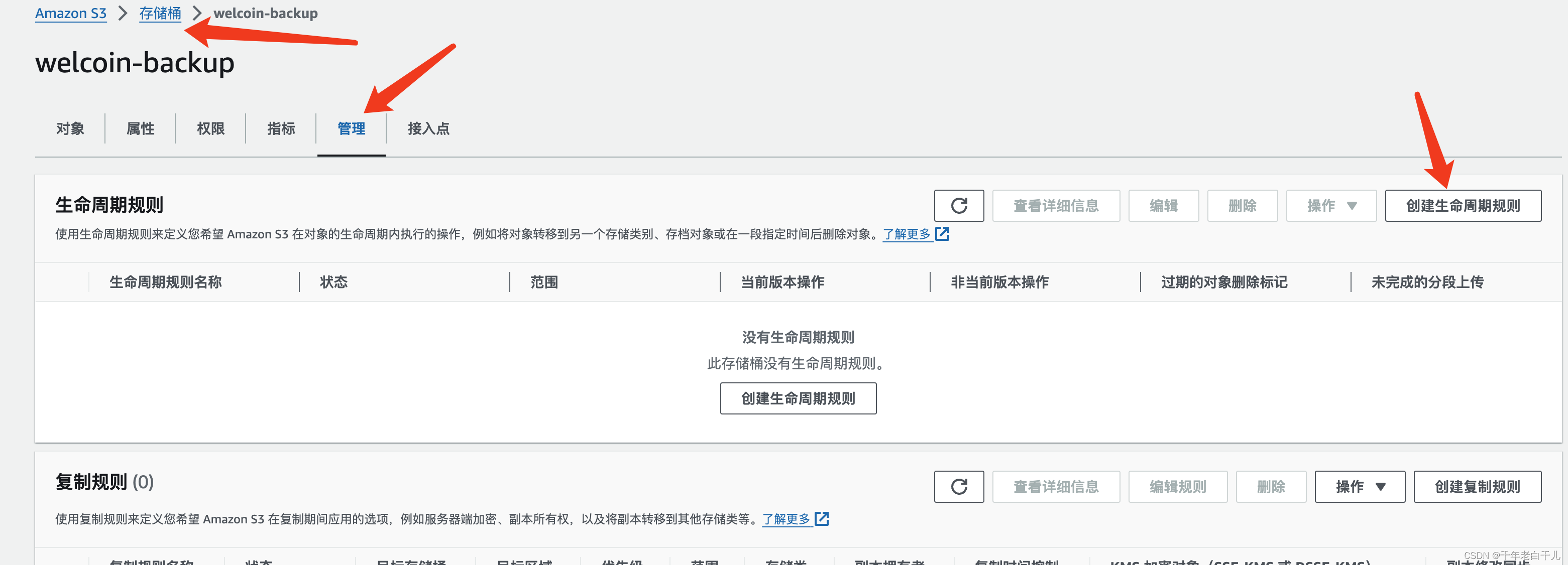 业务场景:周期性备份数据到s3存储桶,设置定期删除,只保留一定周期内的存储数据,节省存储空间减少花费