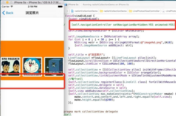 但是认真看了下,虽然把navbar隐藏了,但是整个cell也还是没居中,总觉得缺少了些什么。这时候我把collectionview的高度该小一点,出现了如下的布局错误: