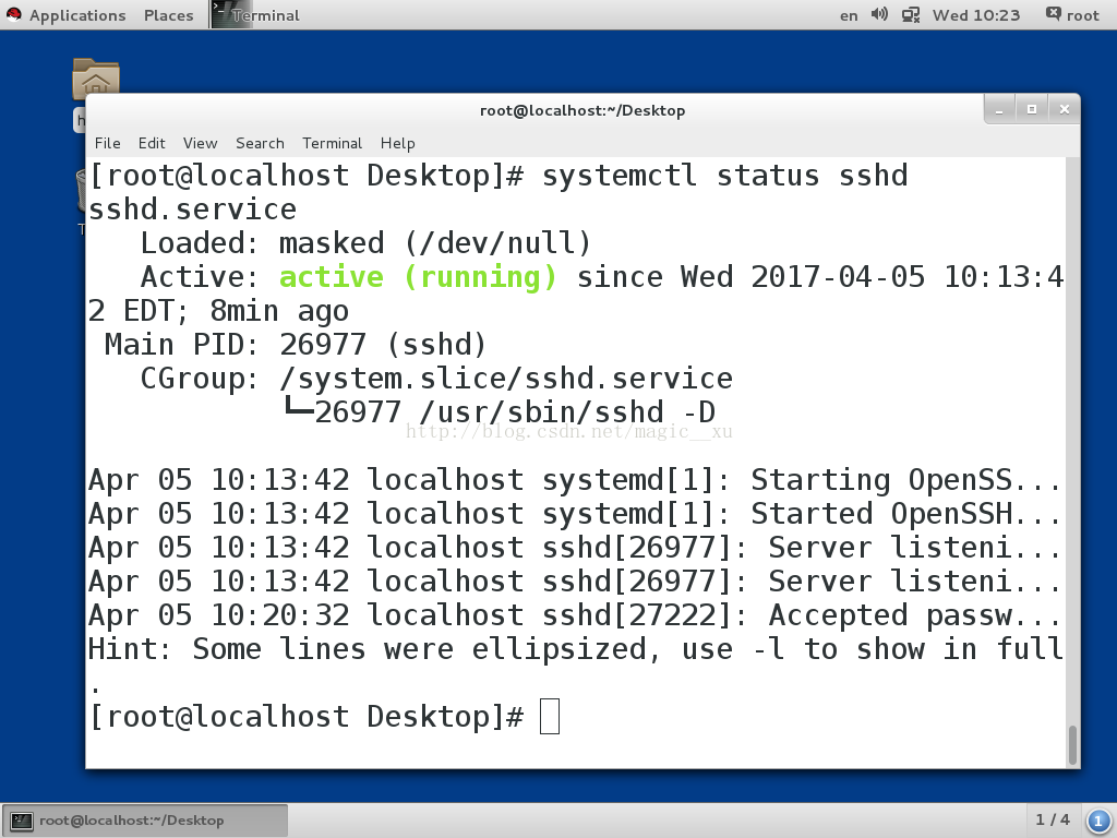 systemctl status sshd 查看指定服务的状态