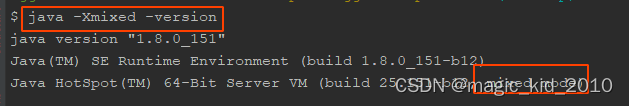 通过截图可知,我们的编译模式为 mixed mode(混合模式,默认)。