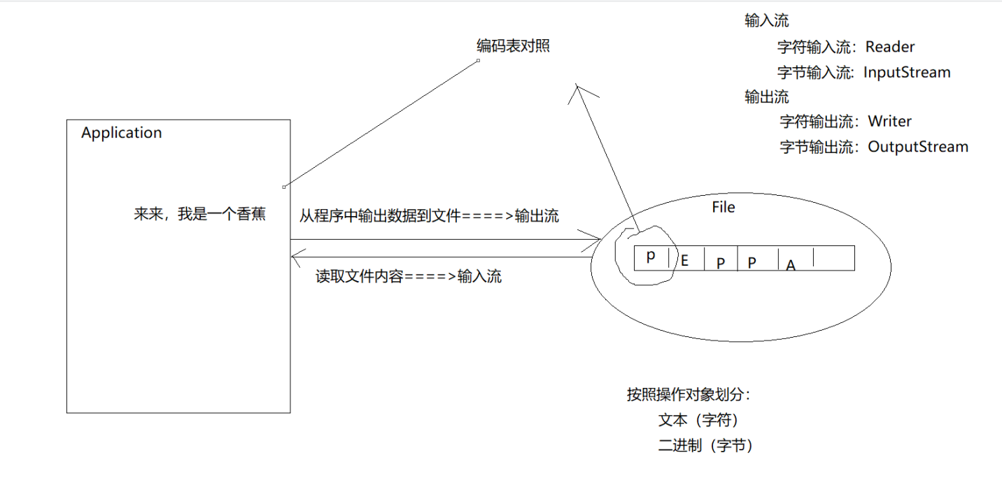 Java,IO流 1、什么是流:流是个抽象的概念,是对输入输出设备的抽象,java程序中,对于数据的输入/输出操作都是以“流”的方式进行。设备可以是文件,网络,内存等。 流具有方向性,至于是输入流还是输出流则是一个相对的概念,一般以程序为参考,如果数据的流向是程序至设备,我们成为输出流,反之我们称为输入流。 可以将流想象成一个“水流管道”,水流就在这管道中形成了,自然就出现了方向的概念。 当程序需要从某个数据源读入数据的时候,就会开启一个输入流,数据源可以是文件、内存或网络等等。相反地,需要写...