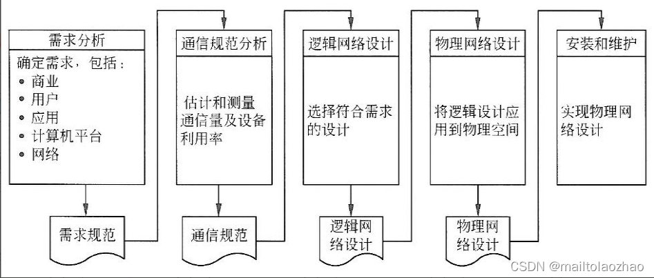 1.网络系统生命周期:五阶段周期模型(瀑布模型)