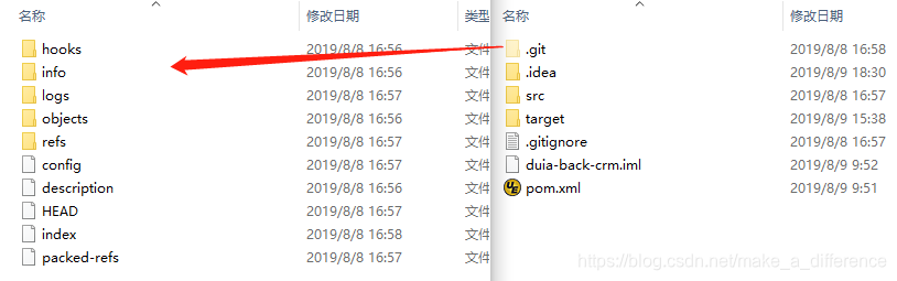 结构介绍,git在目录文件夹中都会产生一个.git的文件目录,里面都是存放着的git所有配置, 这里配置最好不要去动