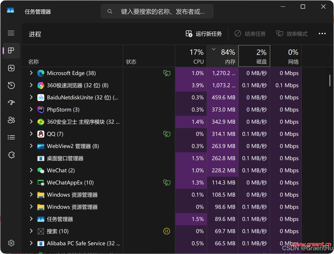 很不理解,为何这么高,一开始推测是说电脑中毒,有可能是由挖矿程序,但是排查很久也没有发现什么可疑的进程之类的,查看任务管理器,查看磁盘使用也没有多么明显的: