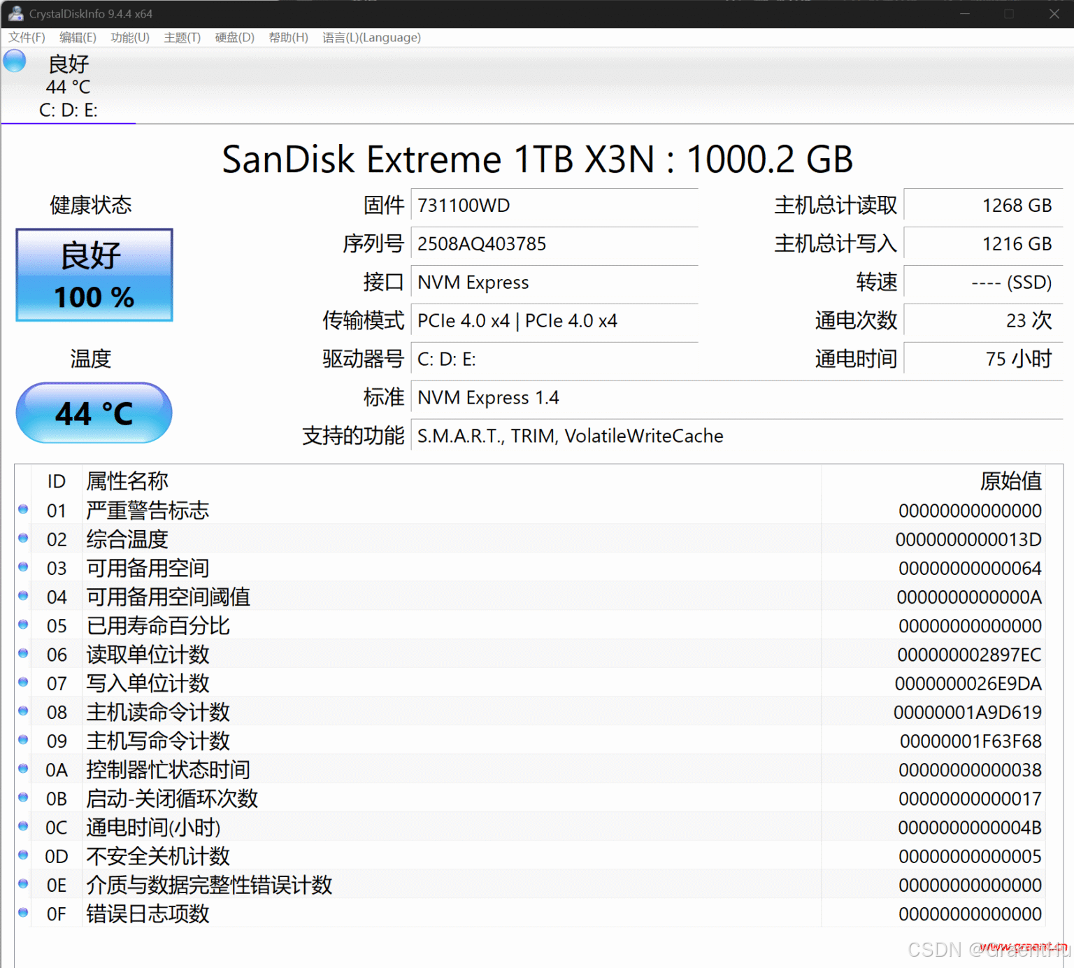 某一天,Windows11右下角突然弹出提示说硬盘健康度降低随时有坏掉的可能,请即使备份数据,点击计入看到确实:
