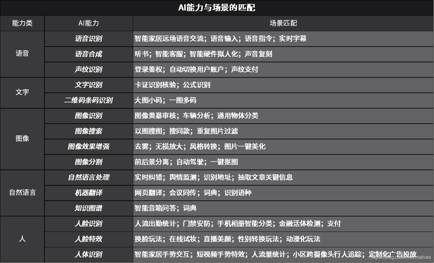 有一些AI能力天生就适合特定场景,如果将对应关系弄错,就会走不少弯路,而对应关系的理解,“无他,但手熟尔”,靠平时的见解与积累。个人归纳的对应关系如下: