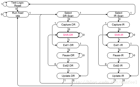 Here's the TAP controller state machine: