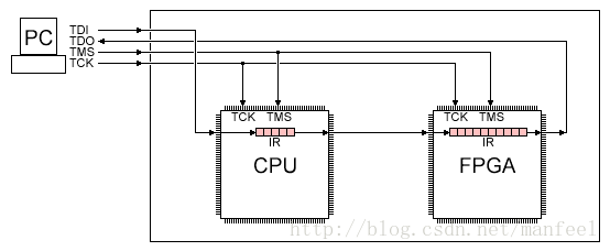 We know that a PC is connected to the JTAG bus as illustrated here: