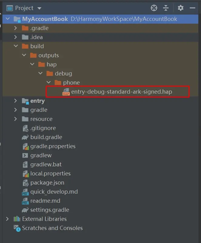 在 bulid 目录下生成 signed 签名后的 hap 包,hap 包生成路径如下图所示: